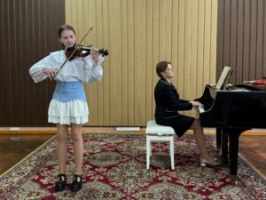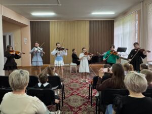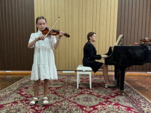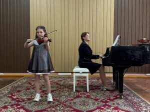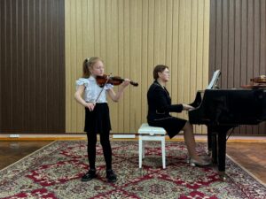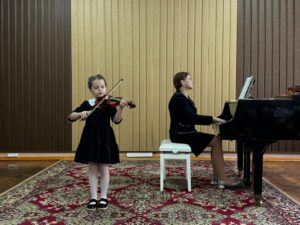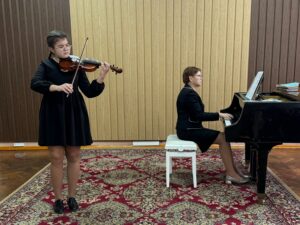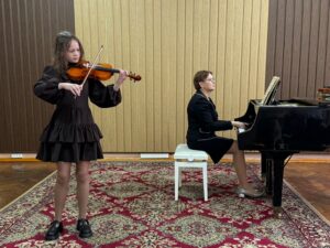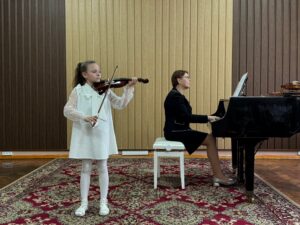 Ученики класса скрипки под чутким руководством талантливого учителя Осмольской И. В. продемонстрировали своё невероятное мастерство и любовь к музыке. Каждый юный музыкант вложил душу в своё выступление, показав, какой долгий и плодотворный путь они прошли. Слушать их игру было настоящим удовольствием! А в завершение вечера, сама Ирина Витольдовна подарила нам свой музыкальный подарок – виртуозное исполнение, которое никого не оставило равнодушным! Это было по-настоящему вдохновляюще!