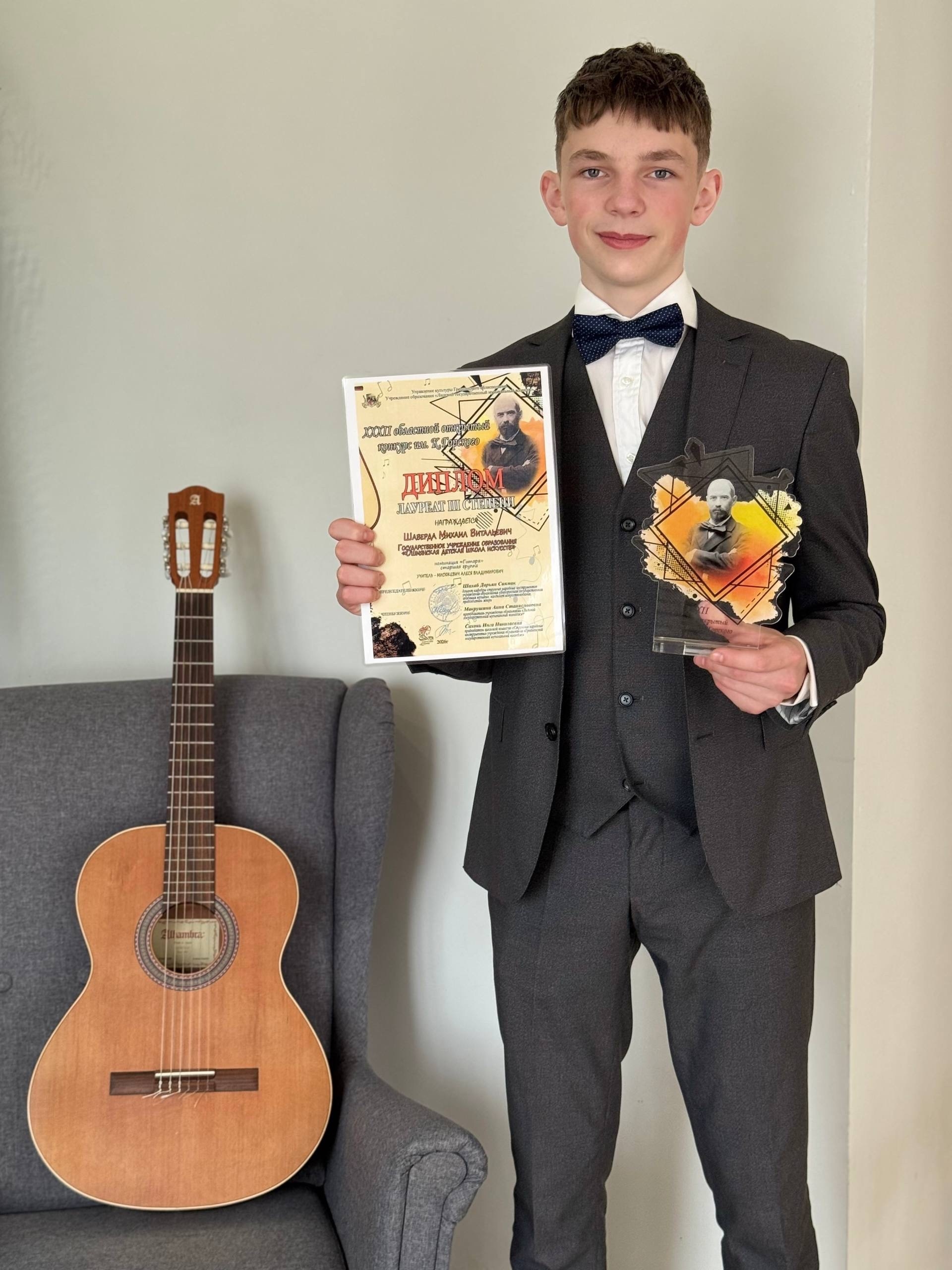 с 1 по 3 апреля в УО «Лидский государственный музыкальный колледж» прошёл XXXII областной открытый конкурс им.К.Горского. Чтобы продемонстрировать своё мастерство в Лиду приехали участники из разных уголков Гродненской области и других регионов Беларуси. Учащиеся Ошмянской детской школы искусств выступили в номинациях «Цимбалы», «Гитара», «Балалайка». Поздравляем наших талантливых музыкантов с заслуженными наградами: Диплом Лауреата 3 степени — Шаверда Михаил, Бырда Мария, Диплом Дипломанта 1 степени- Семёнова София, Диплом Дипломанта 2 степени — Воронович Платон, Станчик Анастасия! Искренние слова благодарности выражаем учителям и концертмейстерам, подготовившим ребят к такому серьёзному творческому состязанию — Щербачевич О.М., Ходорович М.К., Мисюкевич А.А., Павлович О.И., Криницкой Г.А.!